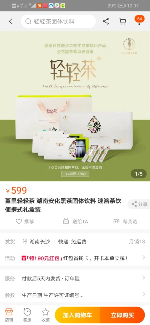 以上这张图片便是轻轻茶在淘宝网上的定价: