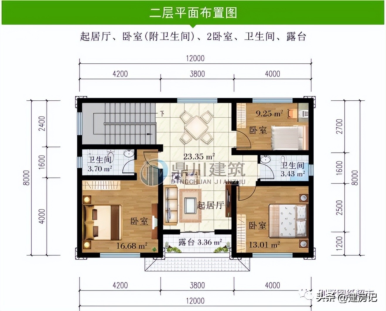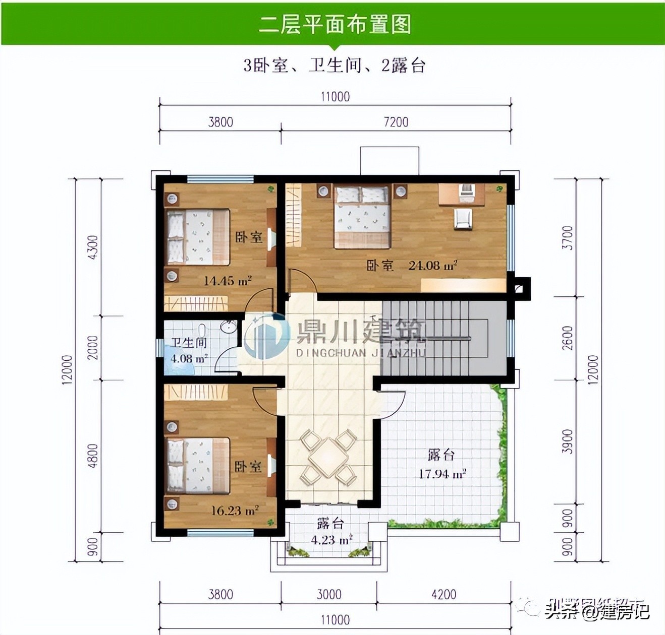 二 层:3卧室、卫生间、2露台
