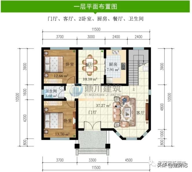 开间: 11.5米 进深: 10.5米