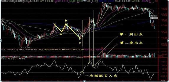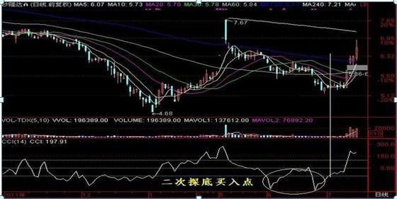 1.CCI顺势指标一次探底买入。应选择强势上涨之后,调整ABC结束的个股。