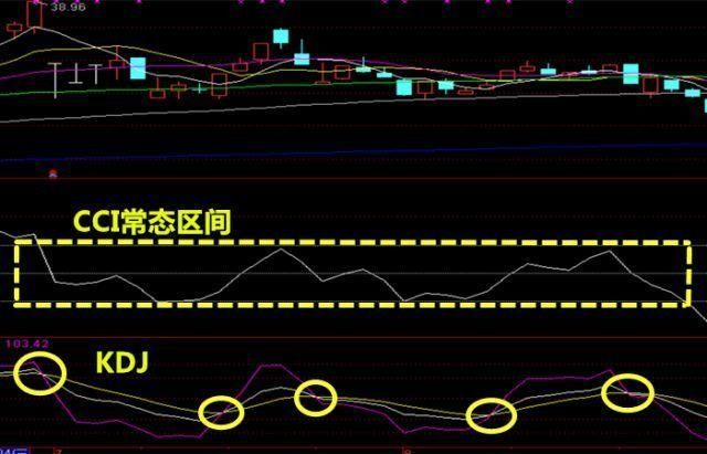 7、当CCI指标在+100线至-100线的常态区间运行时,我们不妨使用KDJ等其他超买超卖类的指标来进行研判。