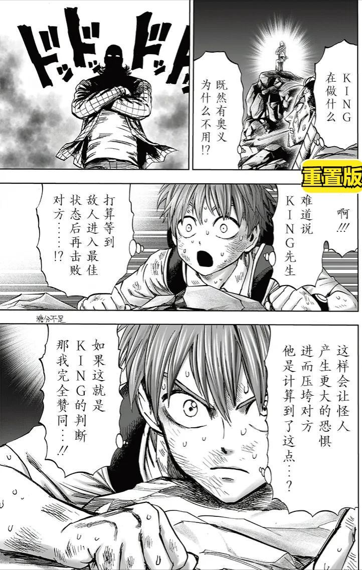 而且King等待敌人们进入最佳状态后再击败对方,这样的操作可以最大程度得给予怪人恐惧感,从而在精神上压垮对方。