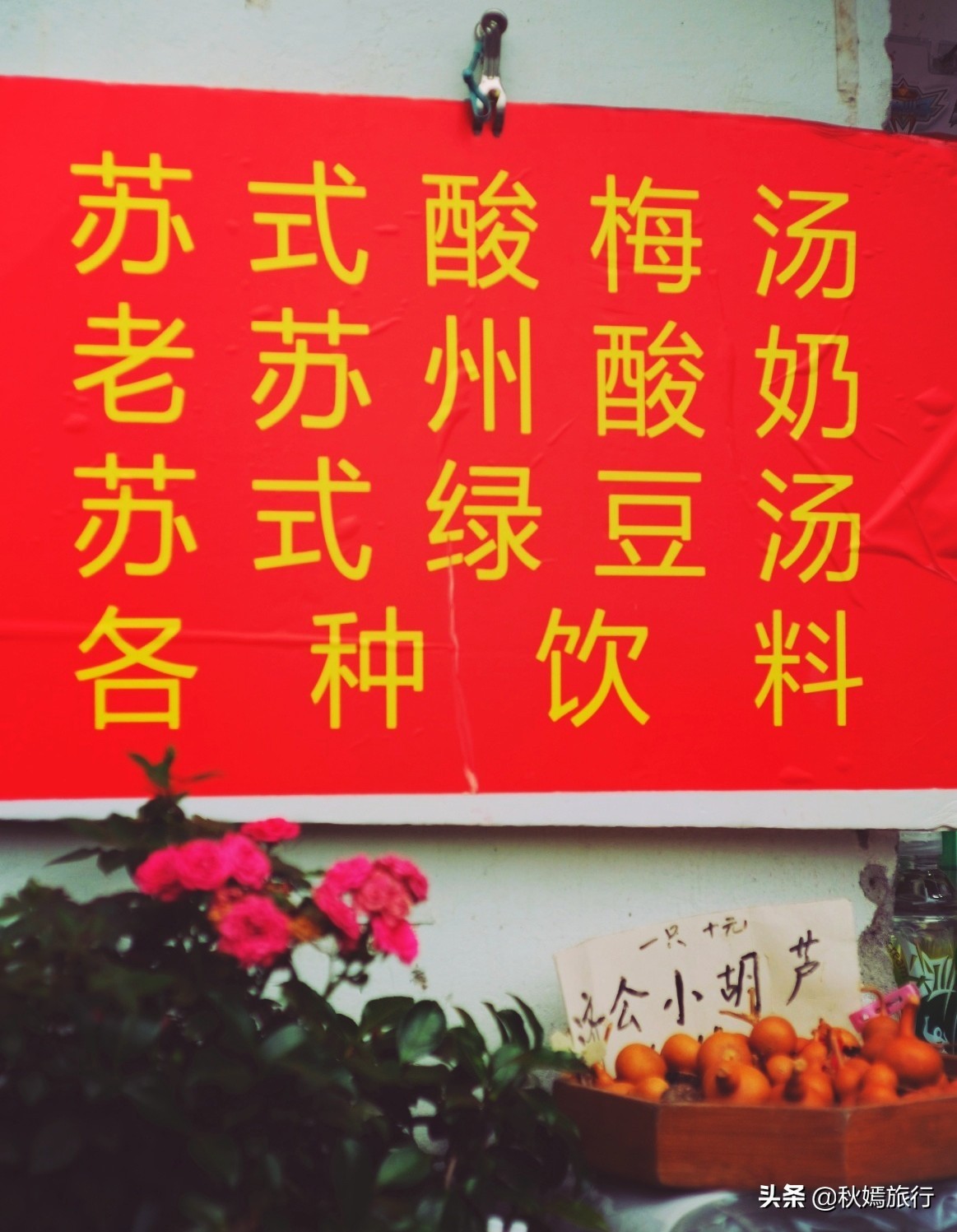 有的外地游客就是专门来品尝苏式小吃的。10元一瓶的苏式酸梅汤十分解渴,冰凉清爽,酸而不涩、甜而不媚。秋嫣品了一口,竟然一口气吸光!