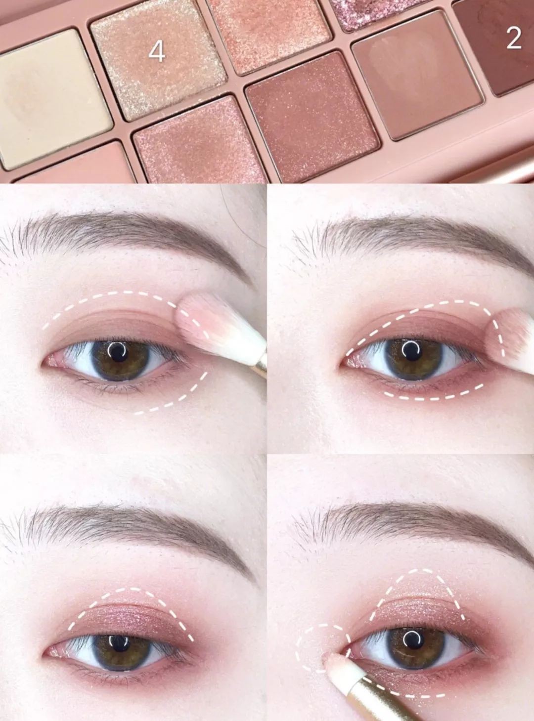眼影不需要太重,以免喧宾夺主,浅浅淡淡带过就好~