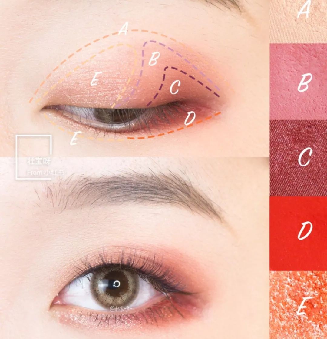 这个南瓜盘我吹爆,真的是随便涂涂都好看。大地色打底,然后用南瓜色涂眼尾和眼下,灵动的少女气息一下子就出来了。