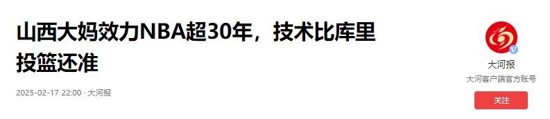 1.大河报:《山西大妈效力NBA超30年,技术比库里投篮还准》,2025-02-17