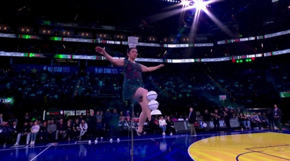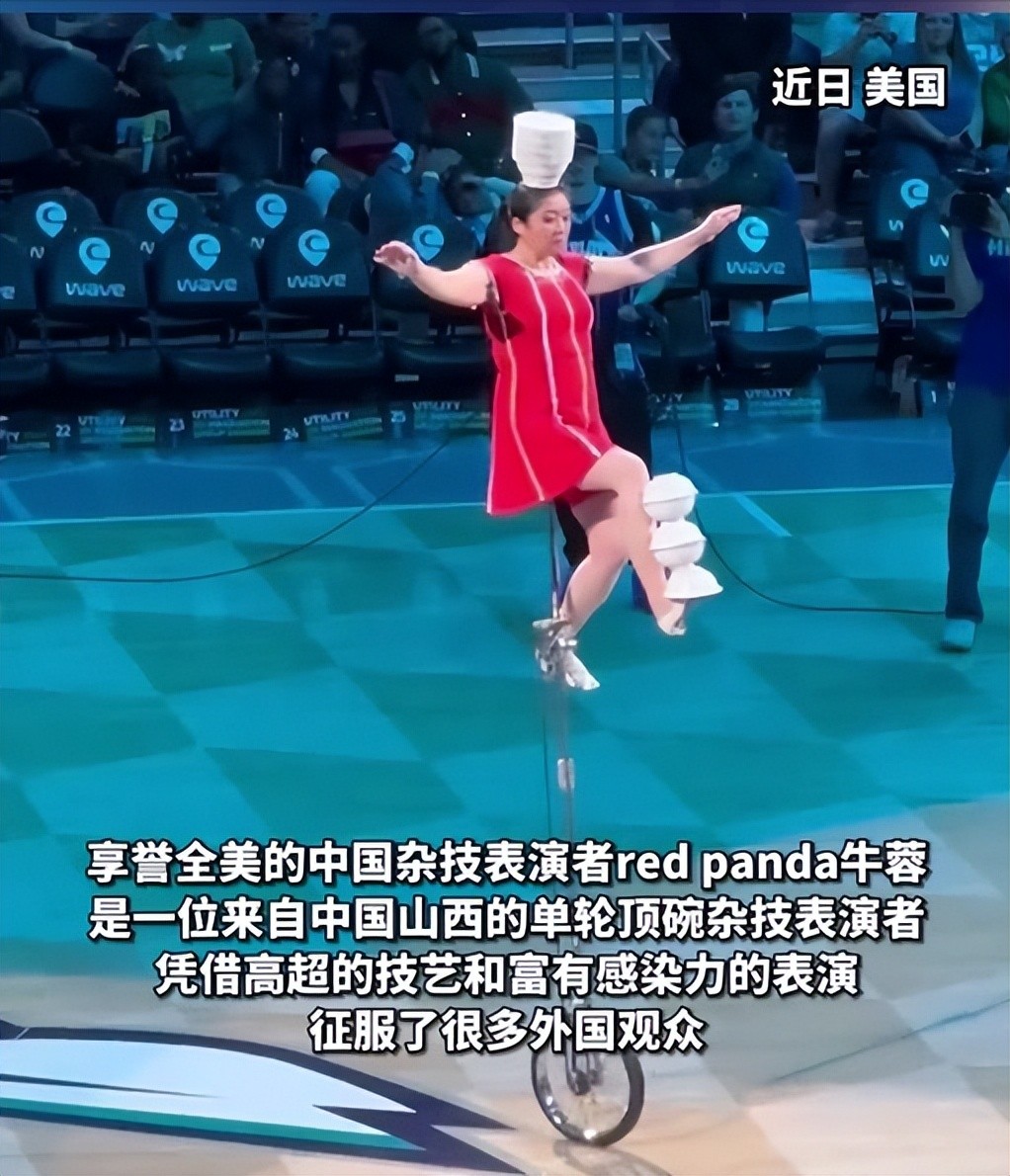 就这样,在NBA的赛场上,牛蓉如约而至,开始了精心准备的杂技表演。