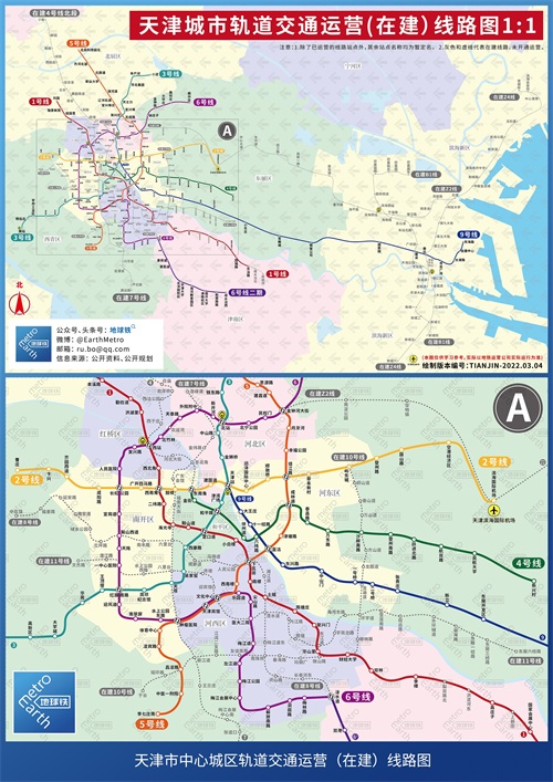 天津城市轨道交通运营(在建)线路图1:1,天津地铁全图超高清