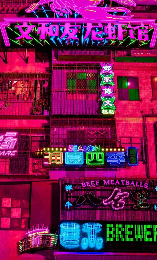 可口可乐的红,润园四季的绿,文和友龙虾馆的旺,老东门游戏厅的潮……炫目色彩让人移不开视线,立体感、科幻感呼之欲出,每个招牌都像是一个神秘入口,通往过去也指向未来。