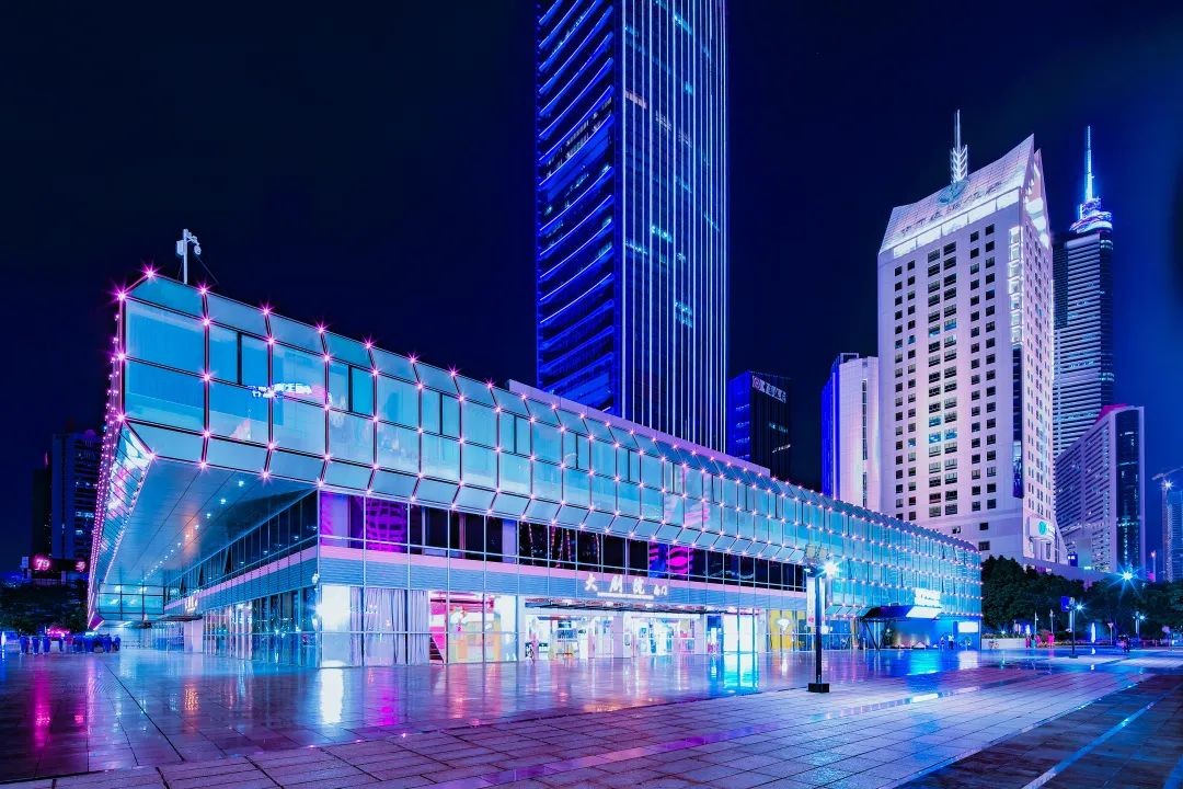 用一个词来形容深圳大剧院,人们的脑海中可能立刻会蹦出“高端”“典雅”“气质”。但在赛博朋克的画风下,白天看起来沉静稳重的深圳大剧院也能迸发出科幻色彩。
