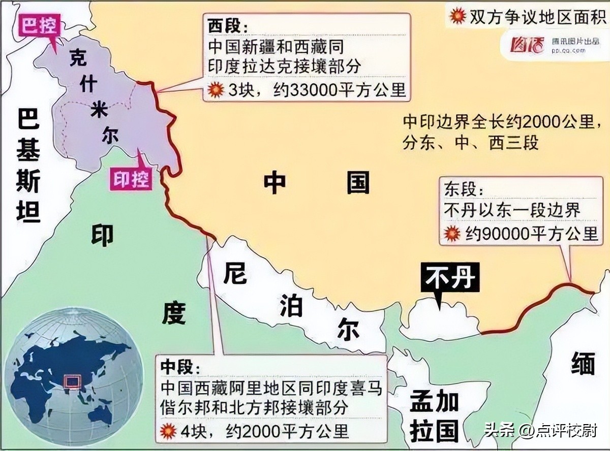 争议面积约9万平方公里(不过根据最新的矢量测量法,争议面积是6.7万平方公里,印度控制6.3万平方公里),就是咱们常说的藏南地区,现大部分控制在印度手里。