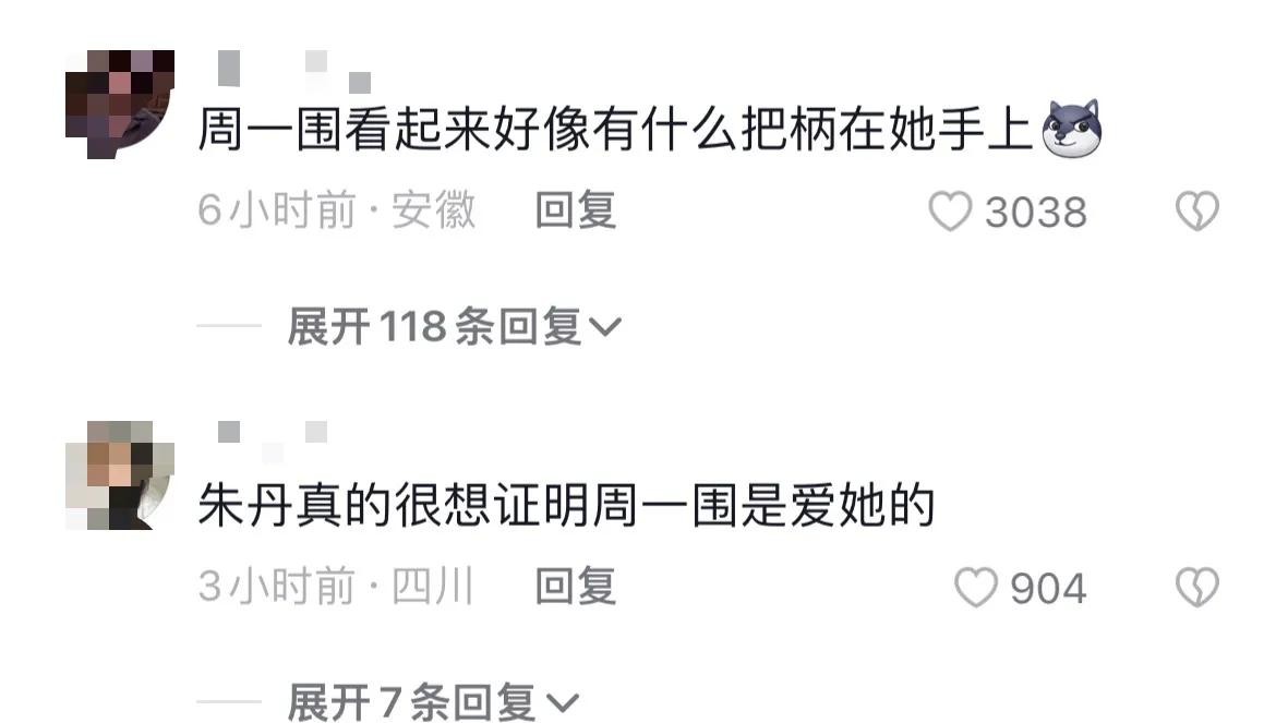 之后两人合体出现的情况更是少之又少,周一围期间还传过和其他女生的绯闻,说朱丹演技不太好的言论也被翻出来被指看不起朱丹等等。